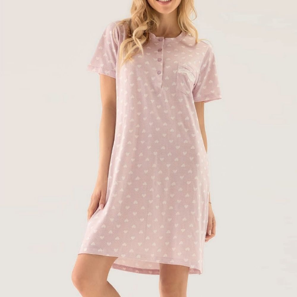 Βαμβακερό Νυχτικό με κοντό μανίκι INFIORE Emotion 632420,ροζ(Cipria). Σύνθεση : 100% cotton Προέλευση : ΙΤΑΛΙΑ