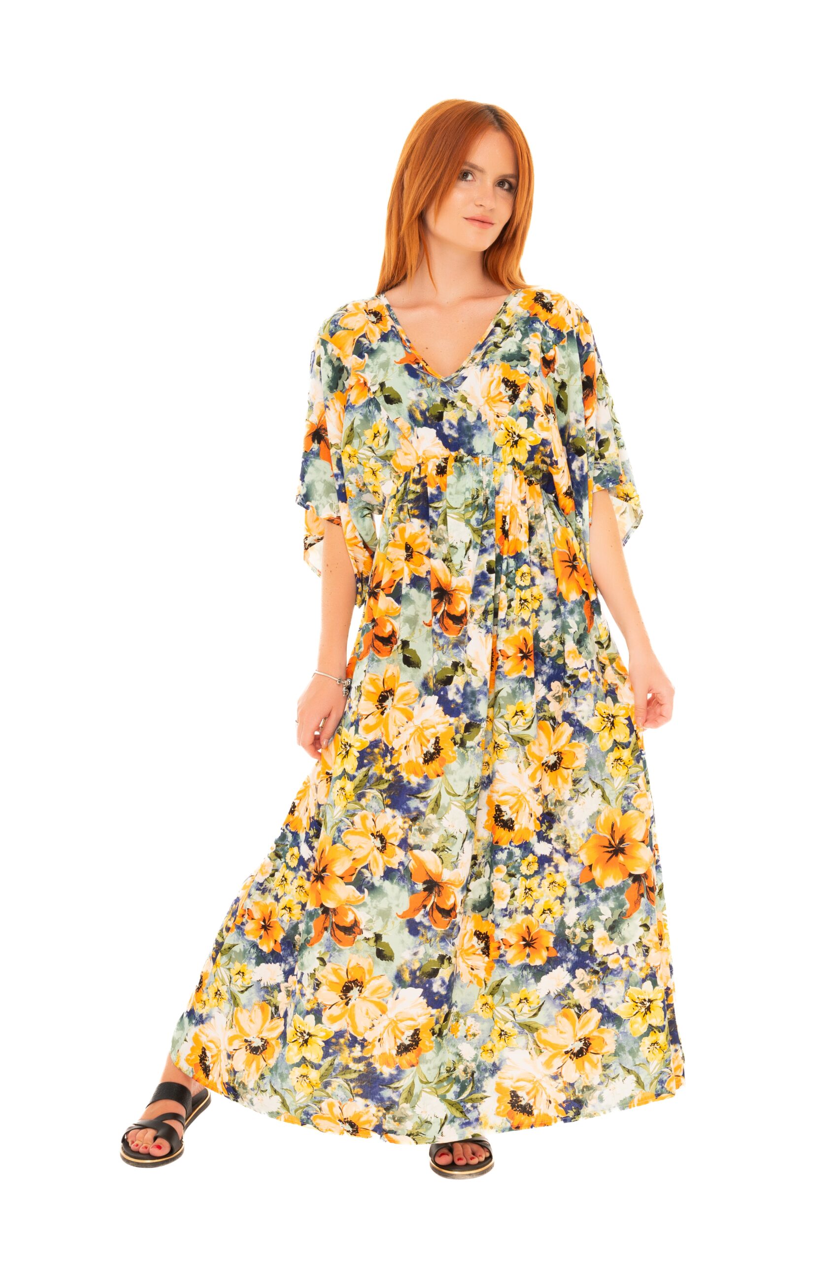 Βαμβακερό φλοράλ Maxi Φόρεμα με μανίκι 3/4 BILLY’S Fashion 25093.