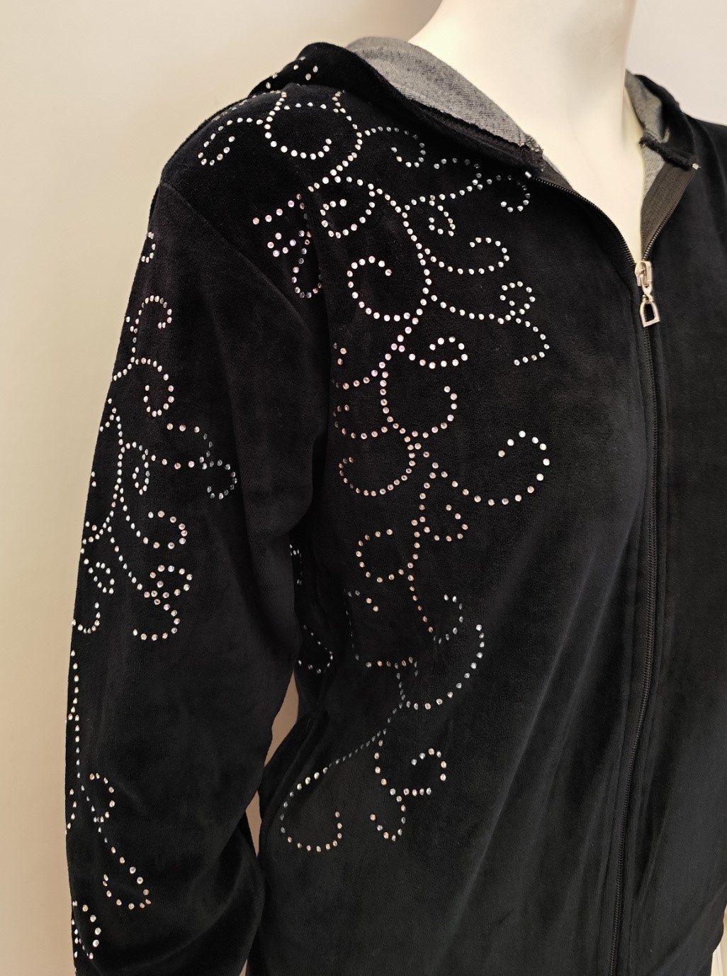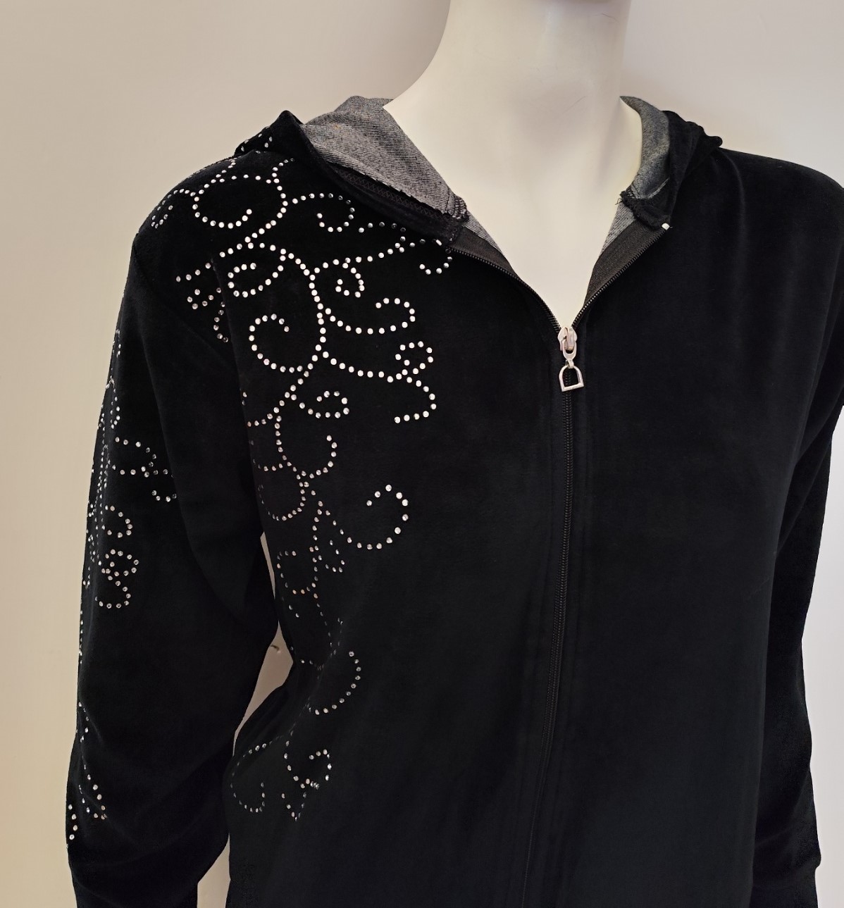 Βελούδινη Φόρμα με κουκούλα και στρας UNDERWEAR-65174,μαύρο. Σύνθεση : 80% cotton | 20% polyester. Προέλευση : ΕΛΛΑΔΑ