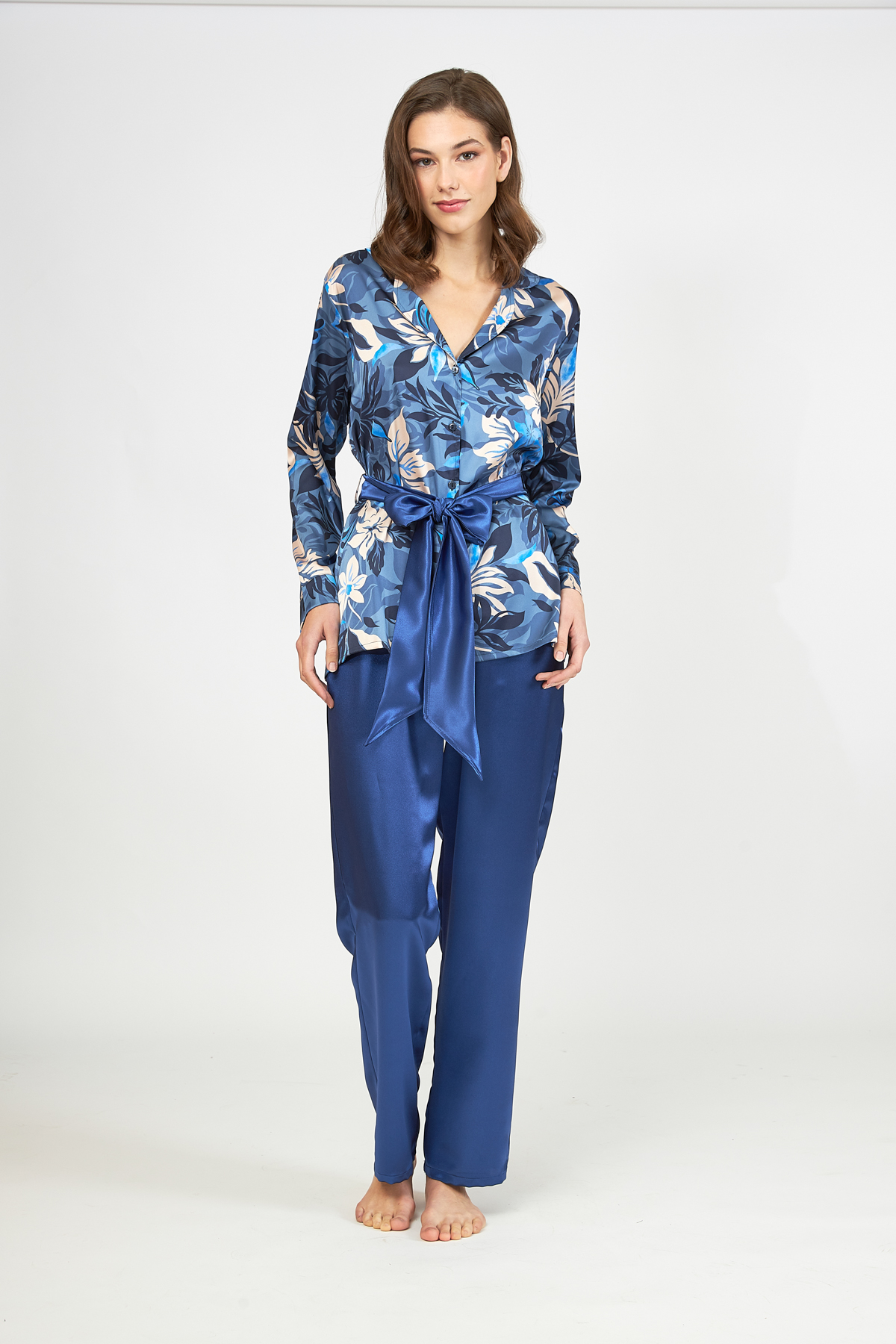 Γυναικεία Σατέν Πυζάμα HARMONY Homewear 607501,μπλε φλοράλ.