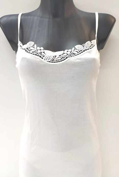 Γυναικείο Top με λεπτή τιράντα και δαντέλα EMMEBIVI Lingerie 12311,λευκό.