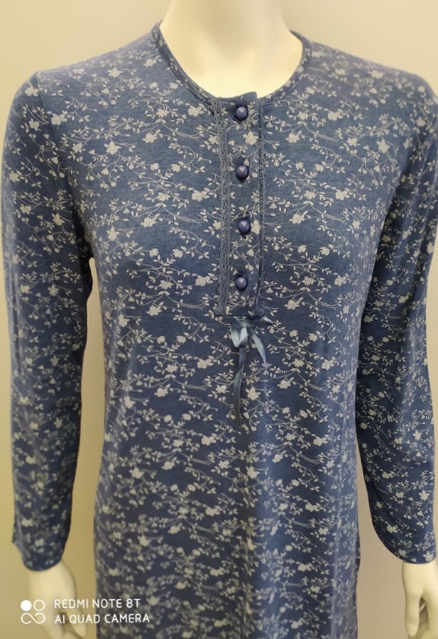 Νυχτικό με μακρύ μανίκι και πατιλέτα GIOTA Homewear 1218,μπλε.