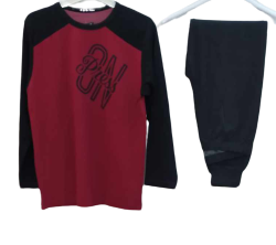 Ανδρική βαμβακερή Πυζάμα με λαιμόκοψη PAG UOMO 1076, μπορντώ.