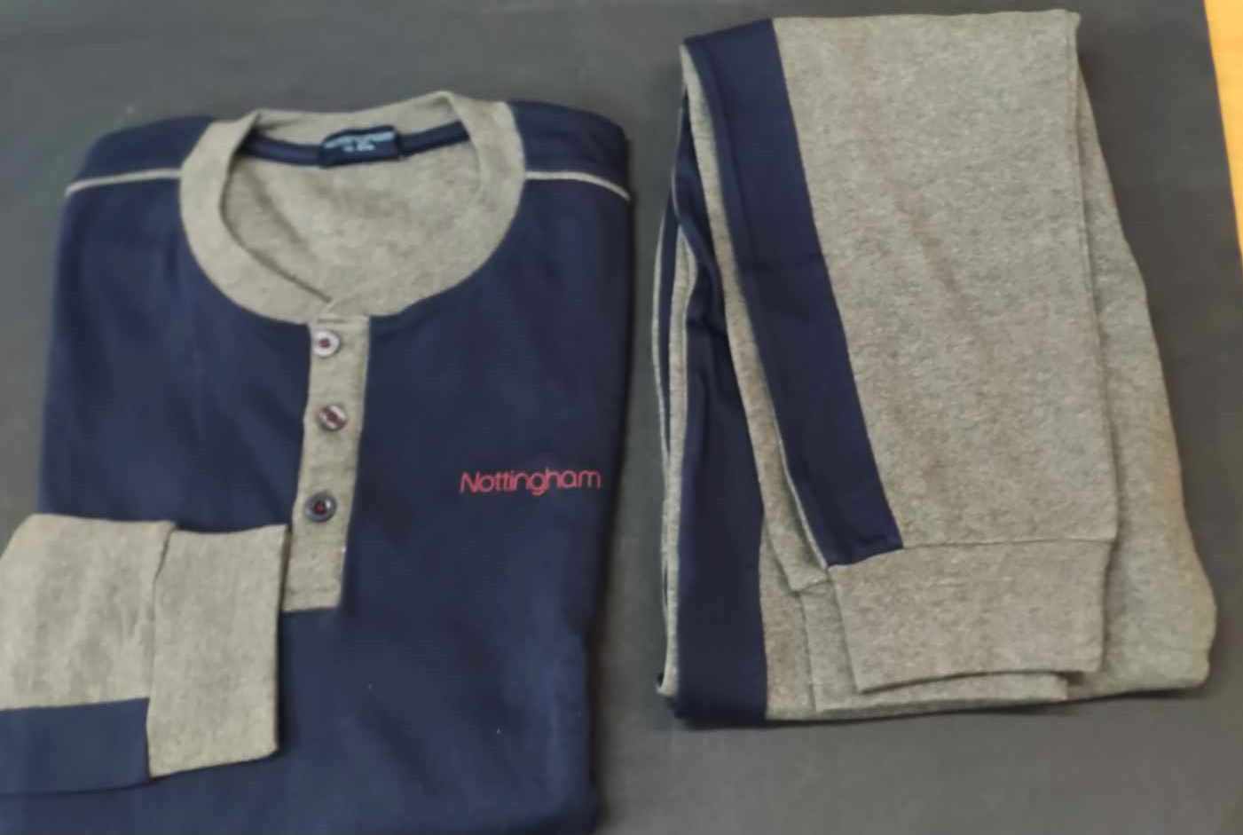 Ανδρική Βαμβακερή Πυζάμα NOTTINGHAM Homewear 35158,γκρι/μπλε.