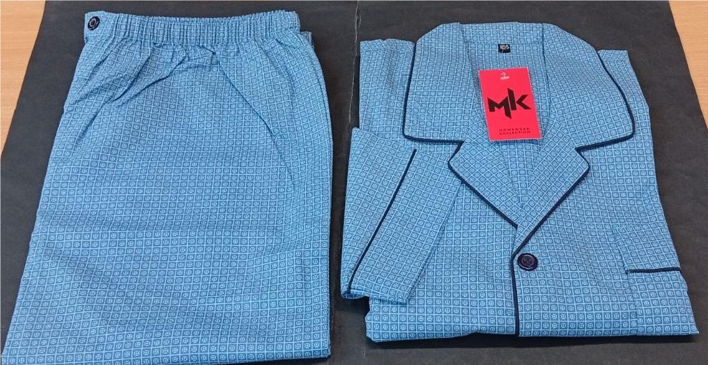 Ανδρική κουμπωτή Πυζάμα με μακρύ μανίκι και μακρύ παντελόνι, MK Homewear 3217,σιέλ.