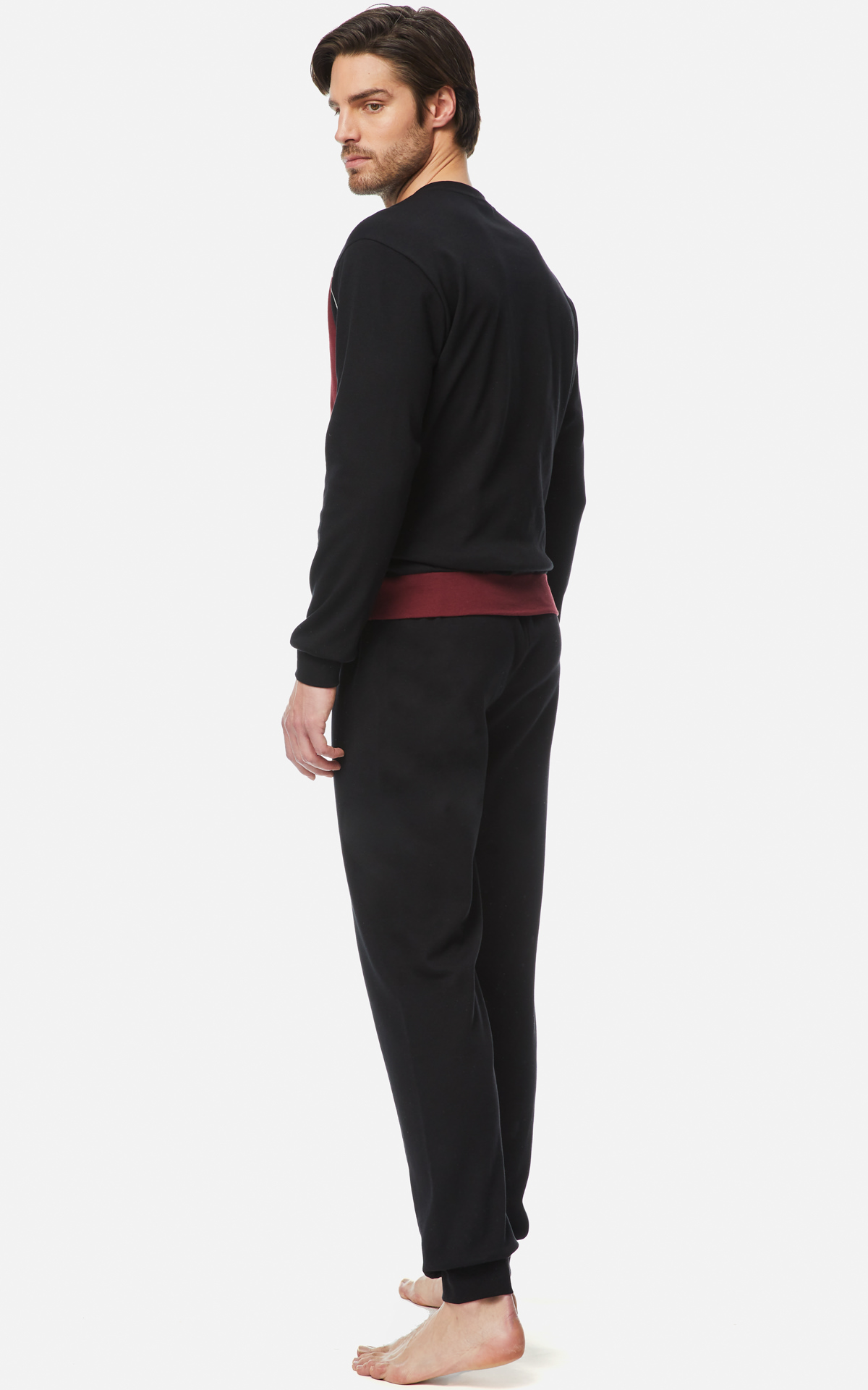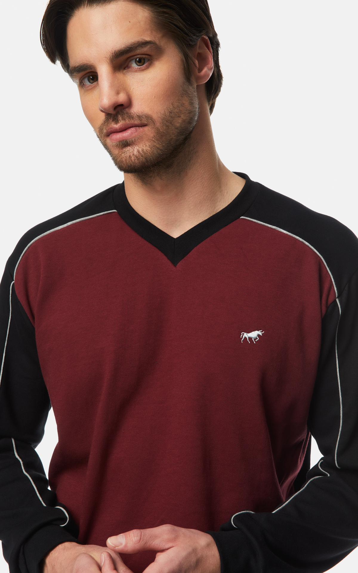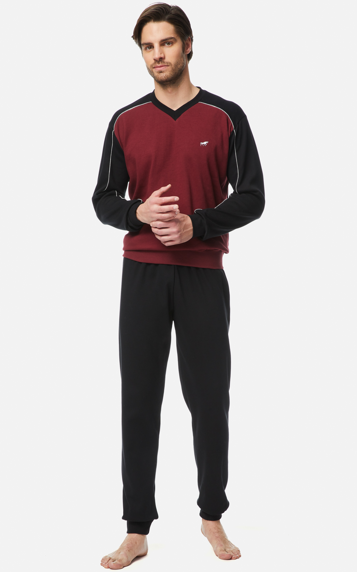 Ανδρική Πυζάμα με V λαιμόκοψη MINERVA 71049,μπορντώ-μαύρο.