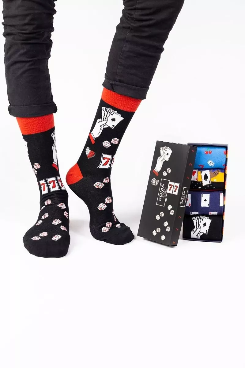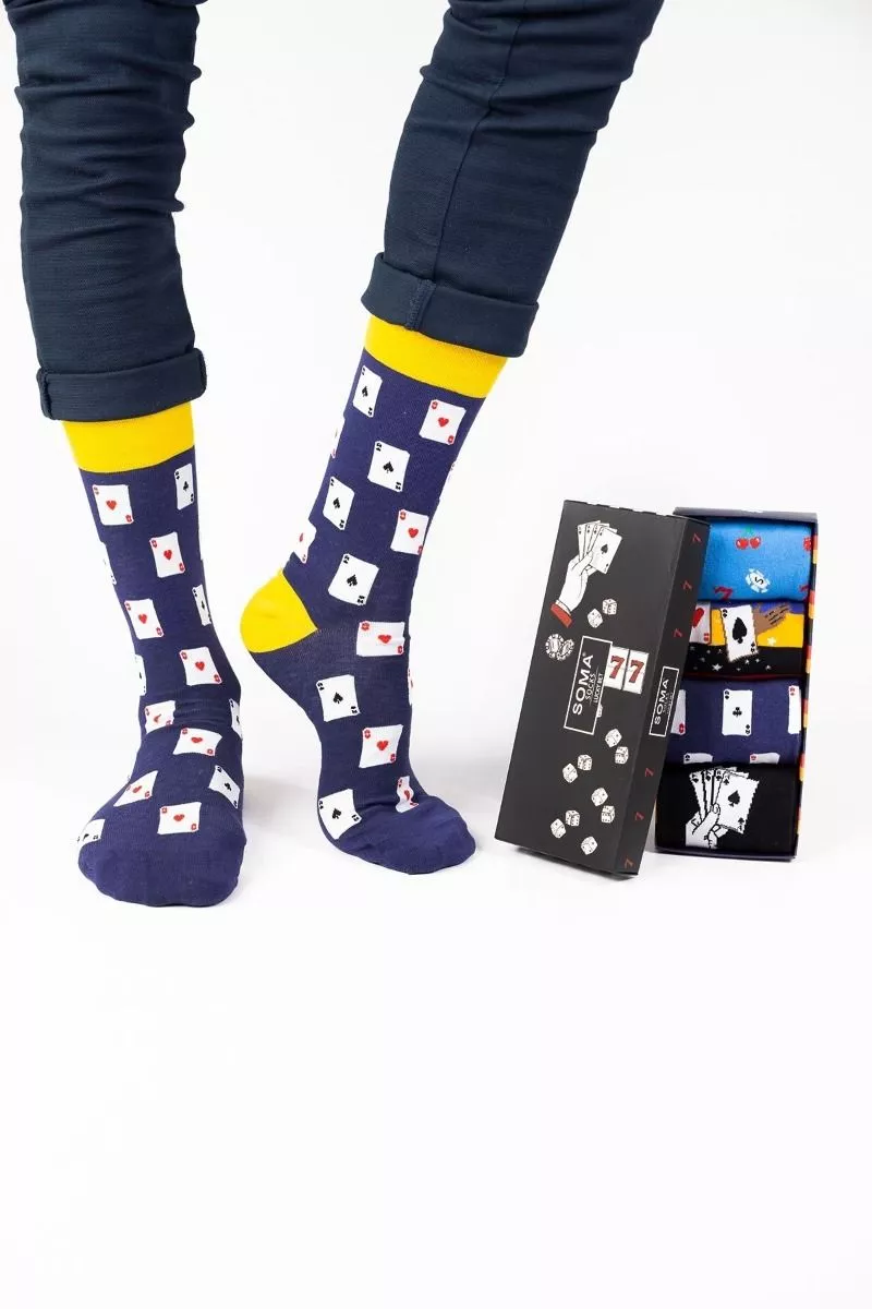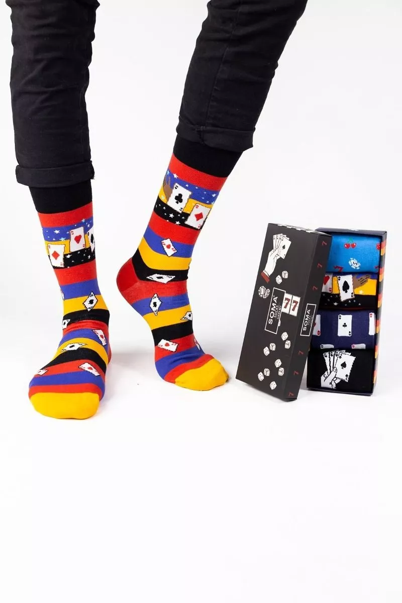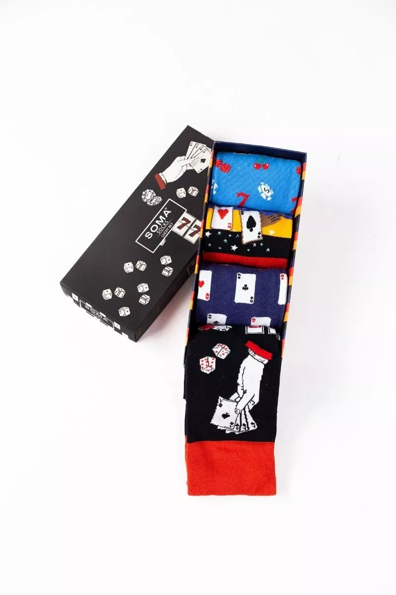 Βαμβακερές Ανδρικές Fashion καλτσες SOMA Lucky Bet, 4pack,One Size.