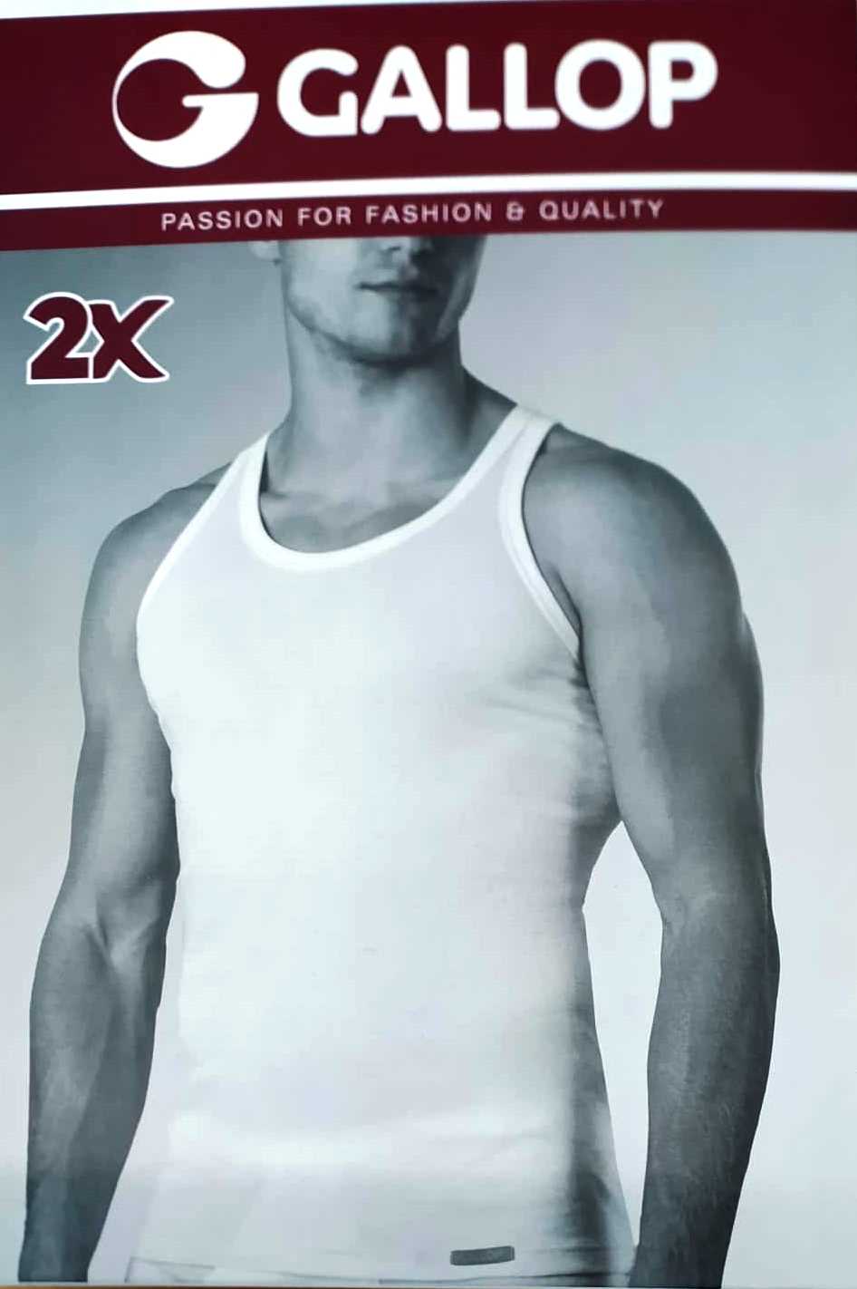 Βαμβακερή Ανδρική φανέλα με τιράντα GALLOP G-077,λευκό,2 pack.