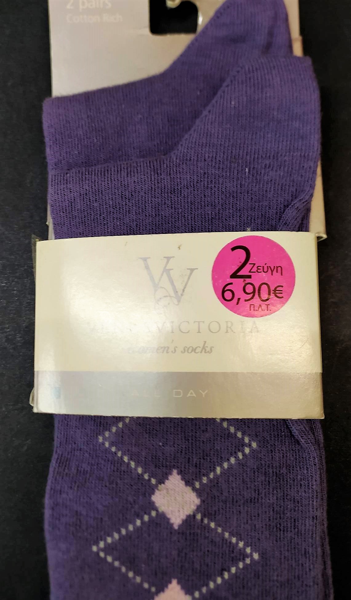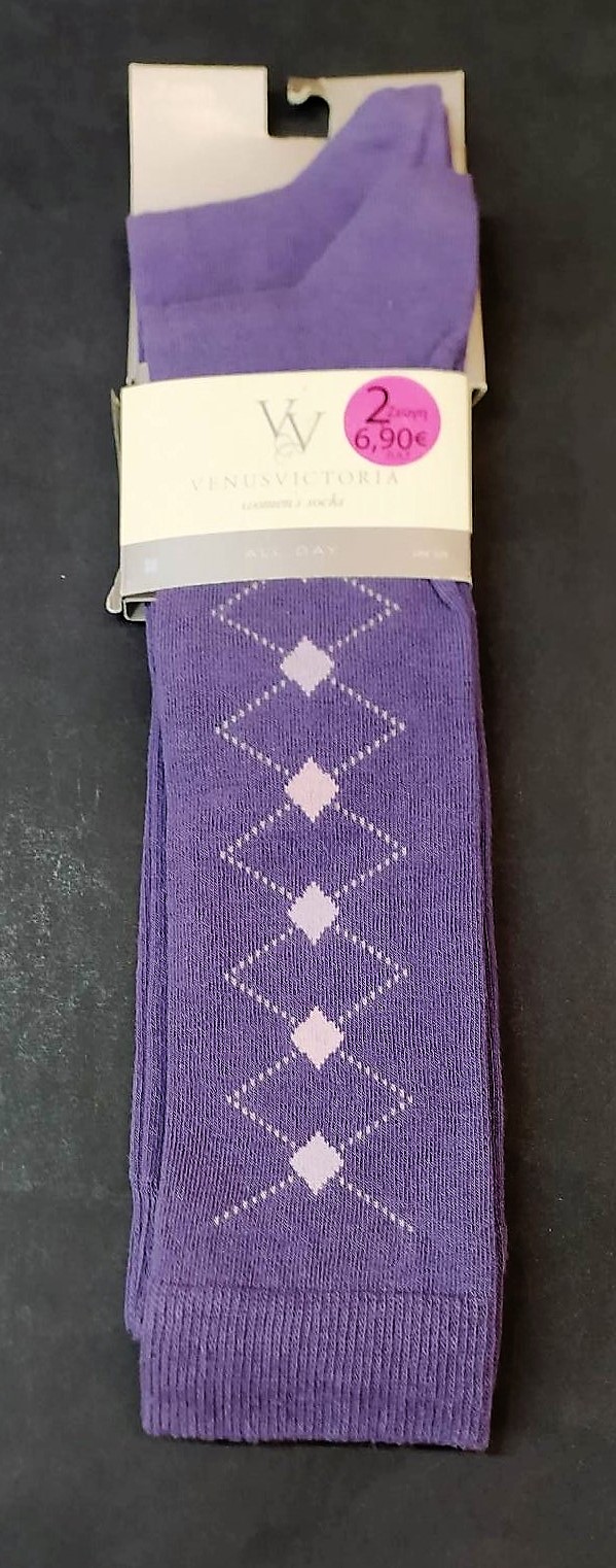 Βαμβακερή Γυναικεία κάλτσα μέχρι το γόνατο VENUS VICTORIA 1027500, 2 ζεύγη, One Size(36-41), Purple.
