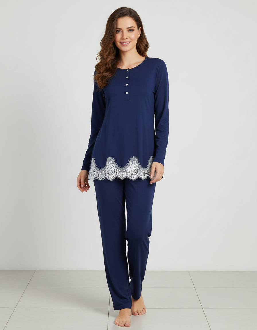 Βαμβακερή Γυναικεία Πυζάμα με δαντέλα JEANNETTE Homewear 6311.