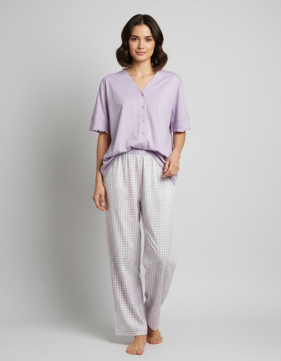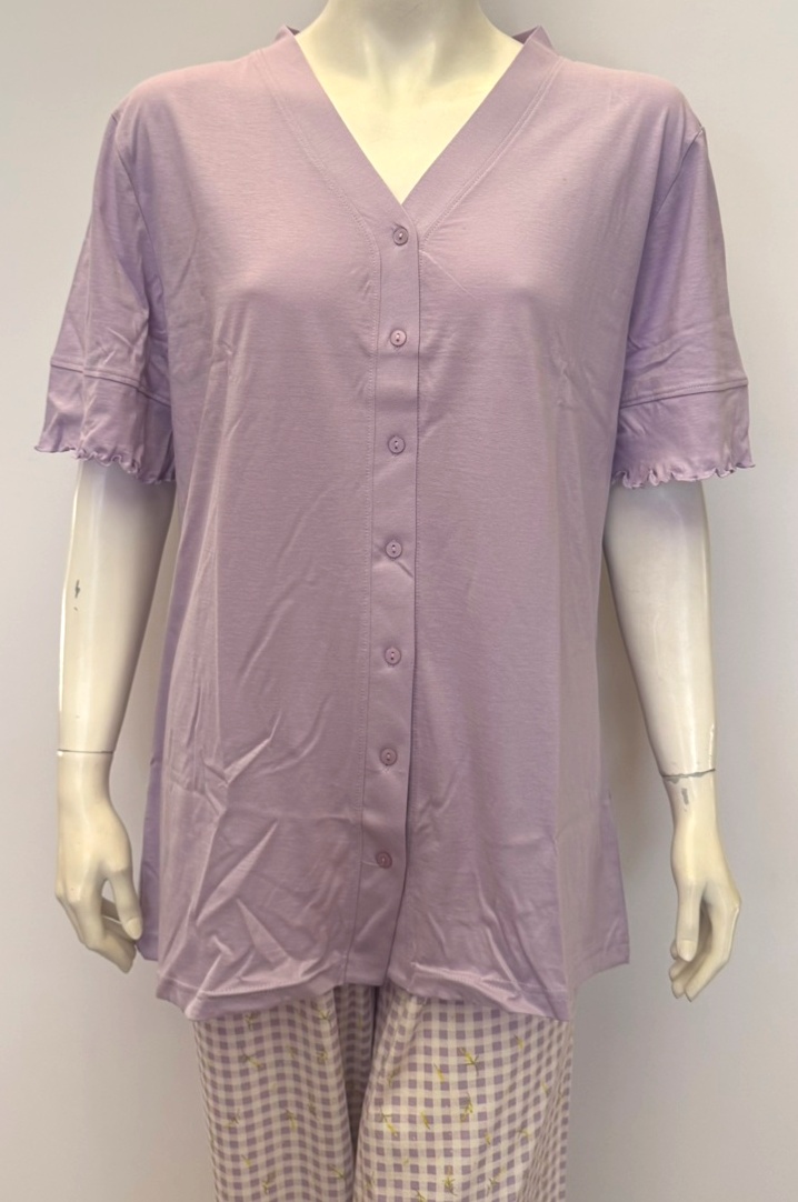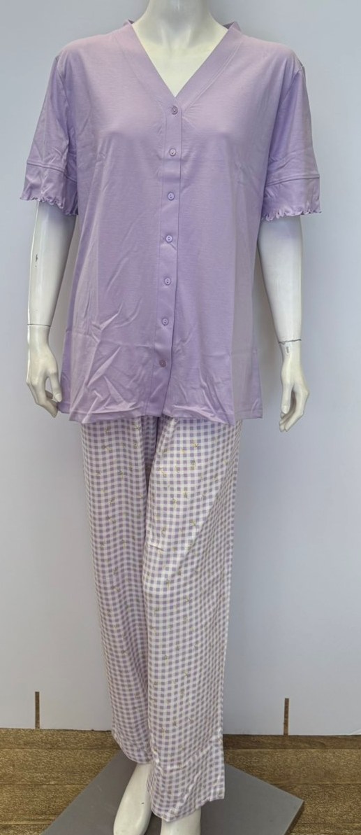 Βαμβακερή Γυναικεία Πυζάμα με μακρύ παντελόνι και κοντό μανίκι NOTTINGHAM PG 49806,λιλά.