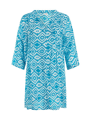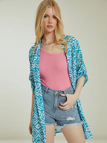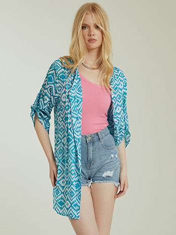 Βαμβακερή Πουκαμίσα-Καφτάνι SECRET GARDEN 3110,τυρκουάζ.