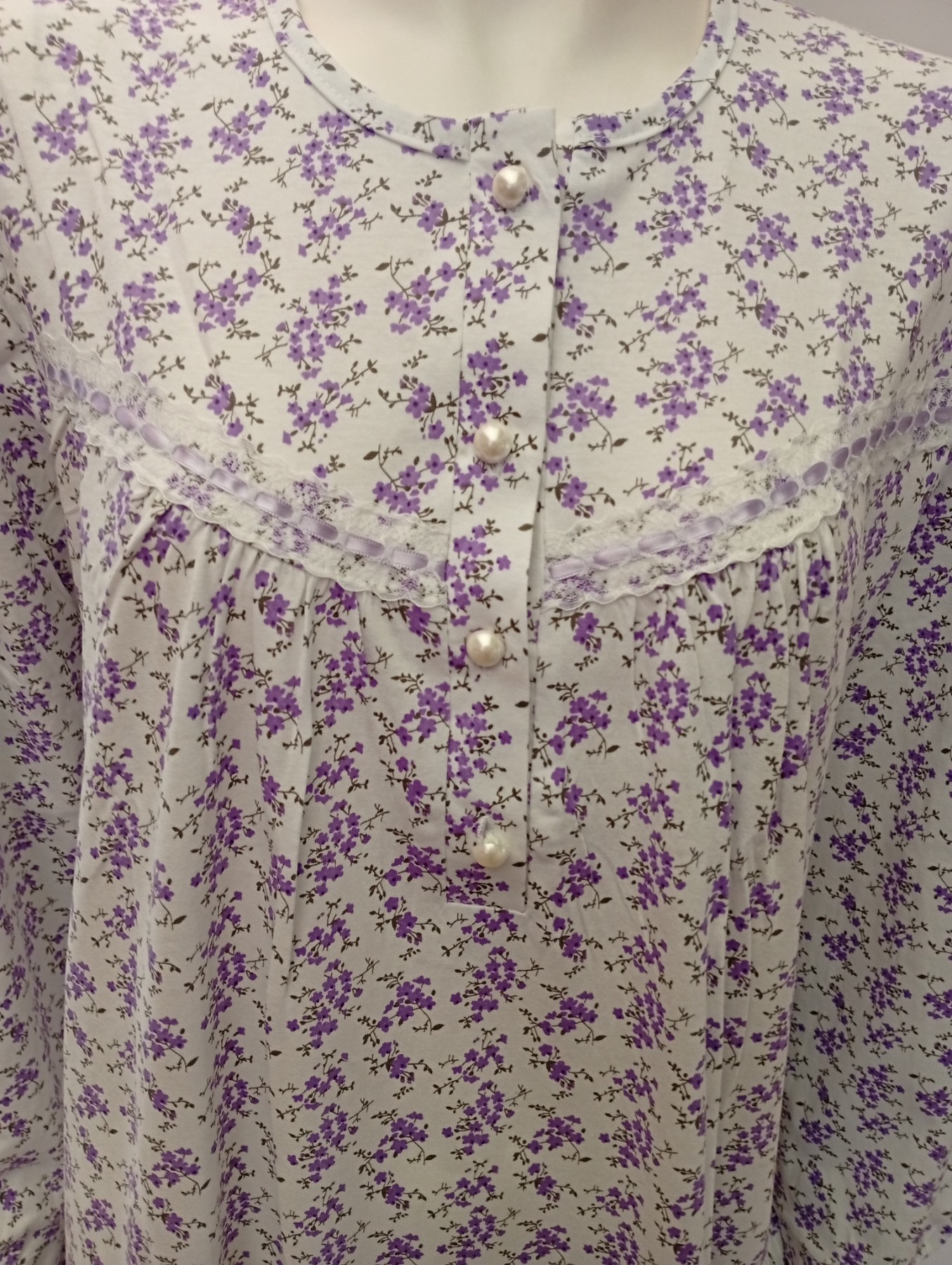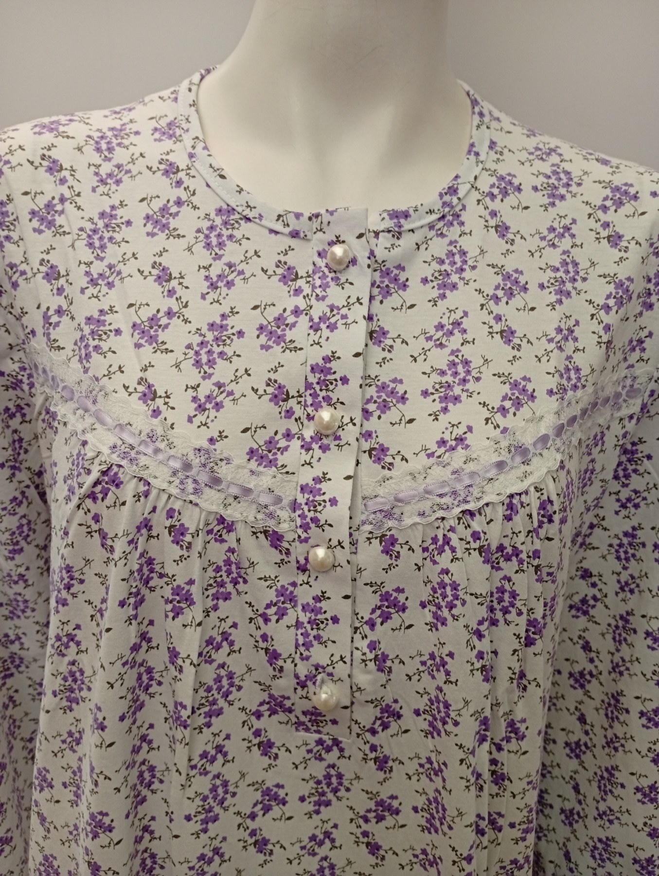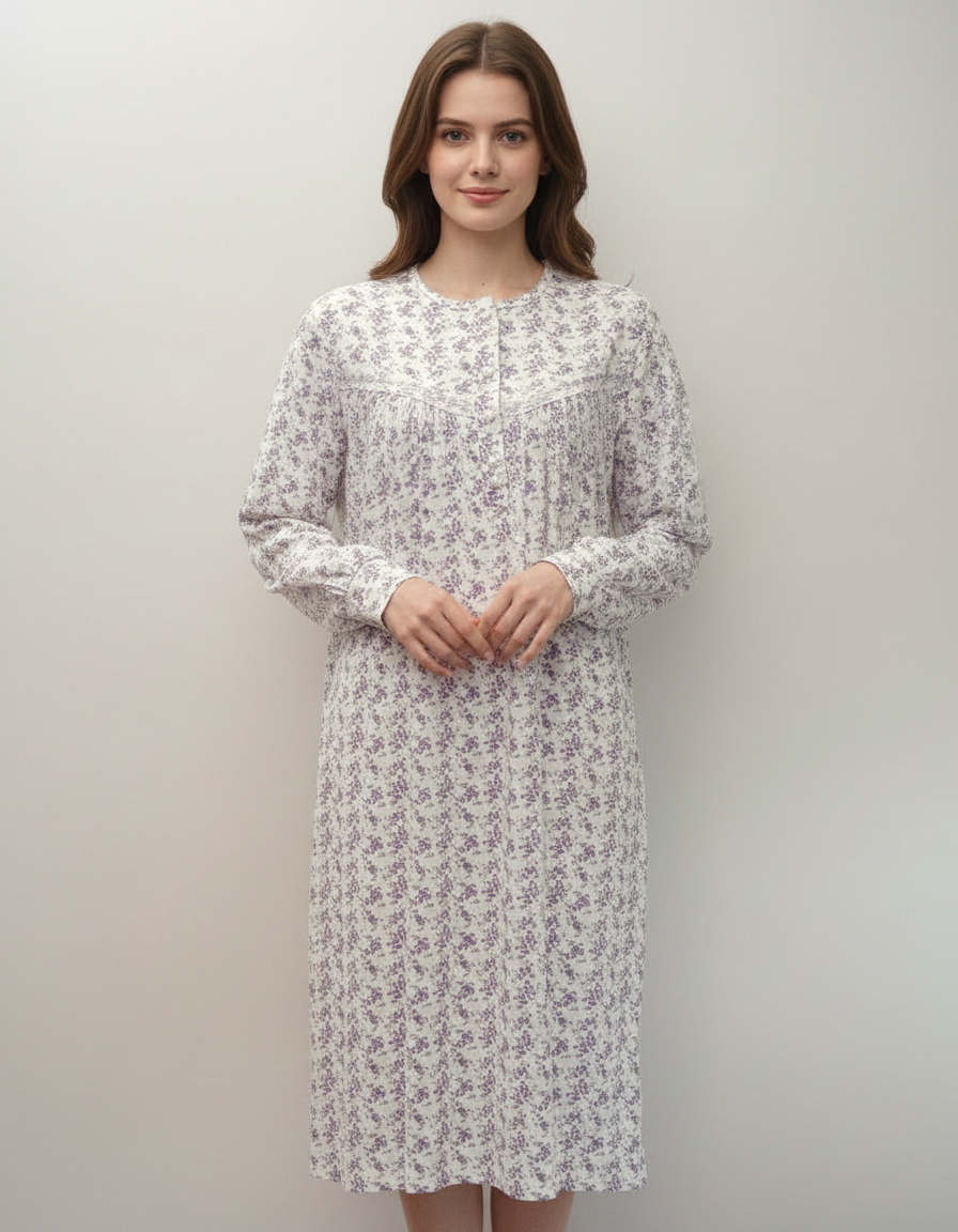 Βαμβακερό μακρυμάνικο Νυχτικό με πατιλέτα GIOTA Homewear 1001,βιολετί.