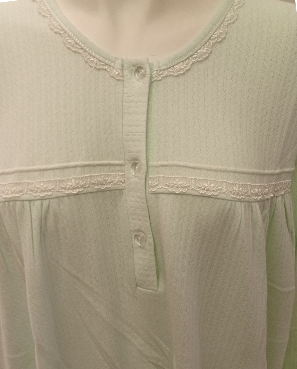 Βαμβακερό μακρυμάνικο Νυχτικό με πατιλέτα PRIMAVERA Homewear 9142,μέντα.
