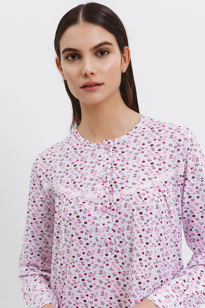 Βαμβακερό Νυχτικό με μακρύ μανίκι και πατιλέτα GIOTA Homewear 1001. Σύνθεση : 100% βαμβάκι. Προέλευση : ΕΛΛΑΔΑ.