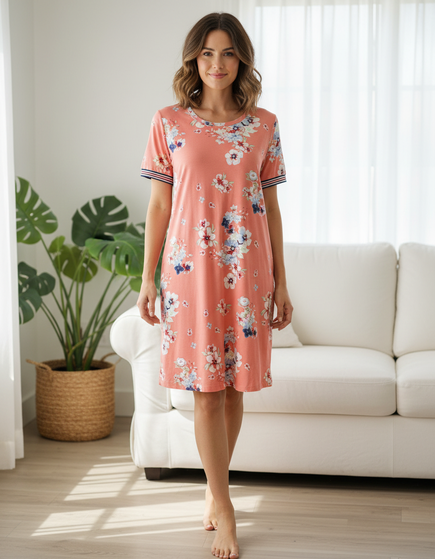 Βαμβακερό Homewear με κοντό μανίκι RINGELLA Fashion 9251001,πορτοκαλί φλοράλ(311).