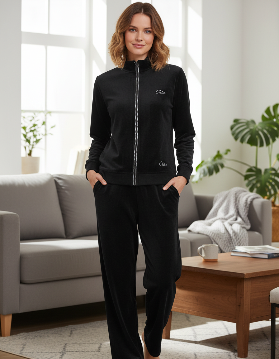 Βελούδινη Φόρμα CLAIRE KATRANIA 8638,μαύρο. Σύνθεση : 80% βαμβάκι – 20% polyester.