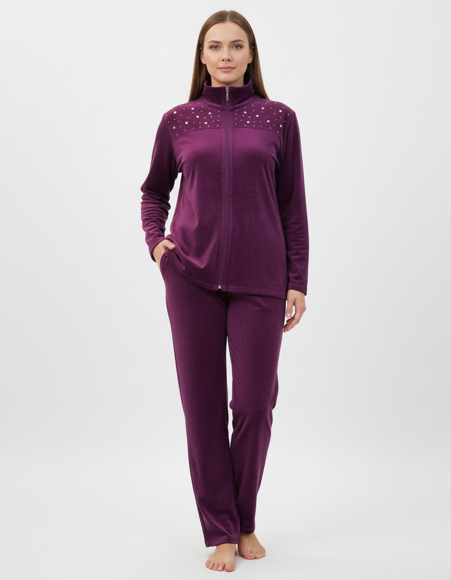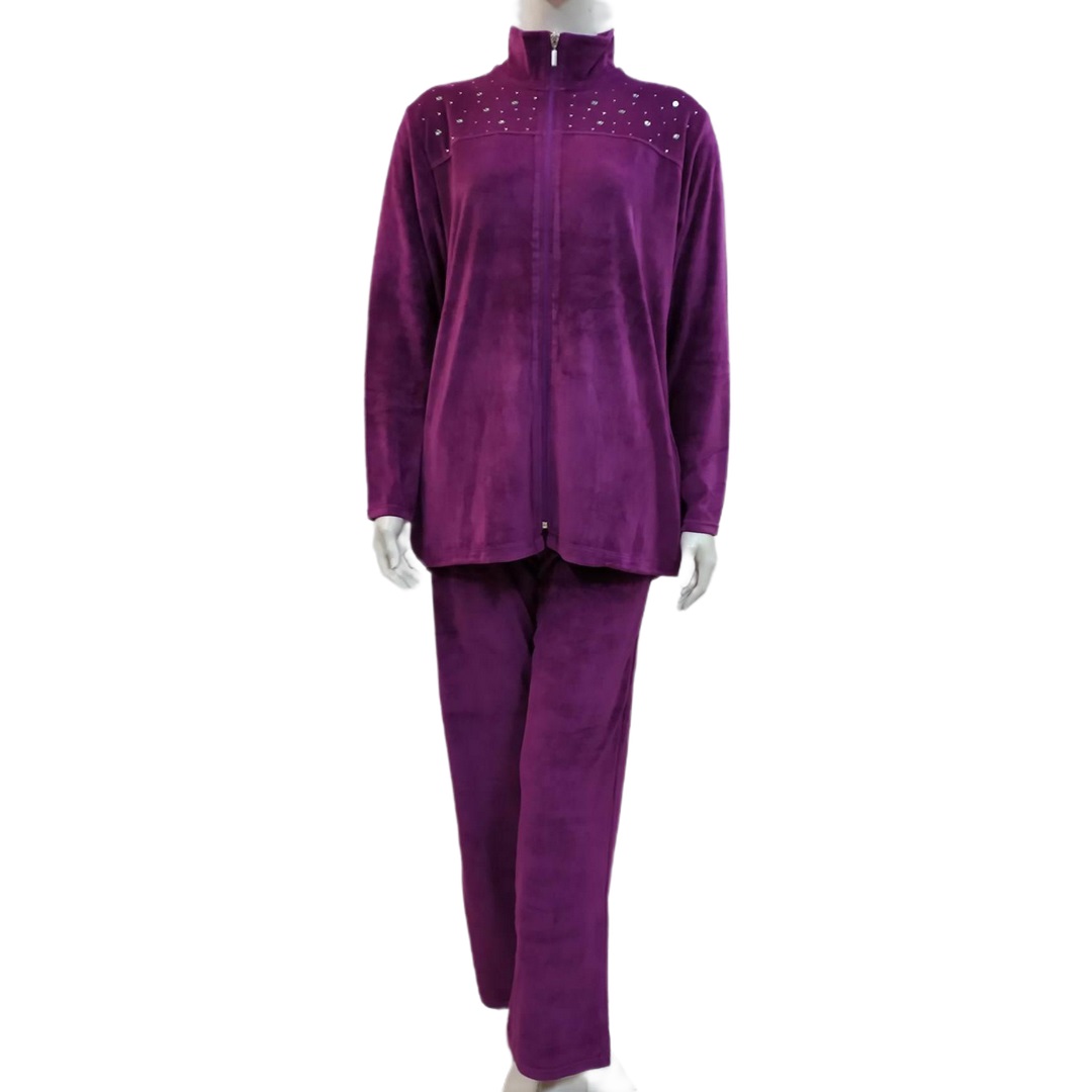 Βελούδινη Φόρμα Jeannette Homewear 5166,μωβ. Σύνθεση : 80% βαμβάκι – 20% polyester.