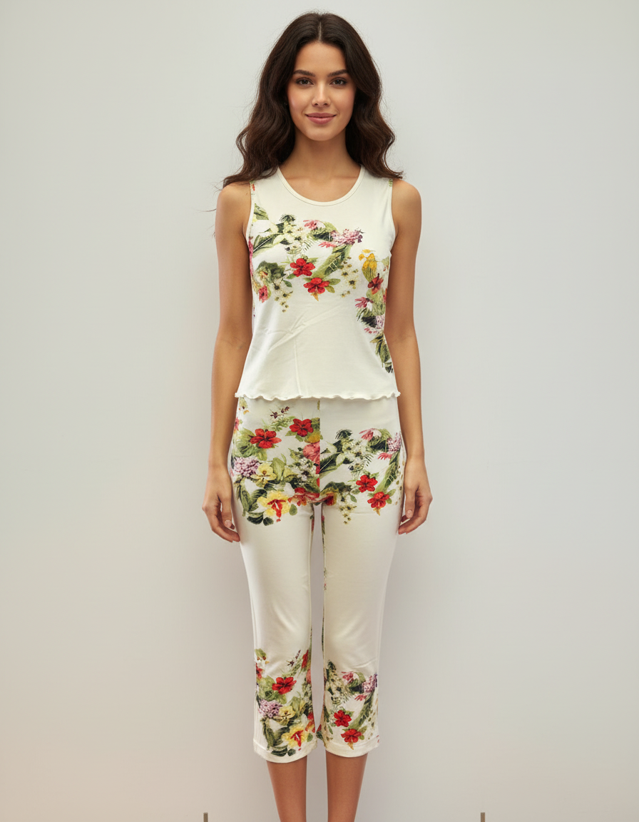 Γυναικείο Homewear με Κάπρι παντελόνι CLAIRE Katrania 7286,φλοράλ.