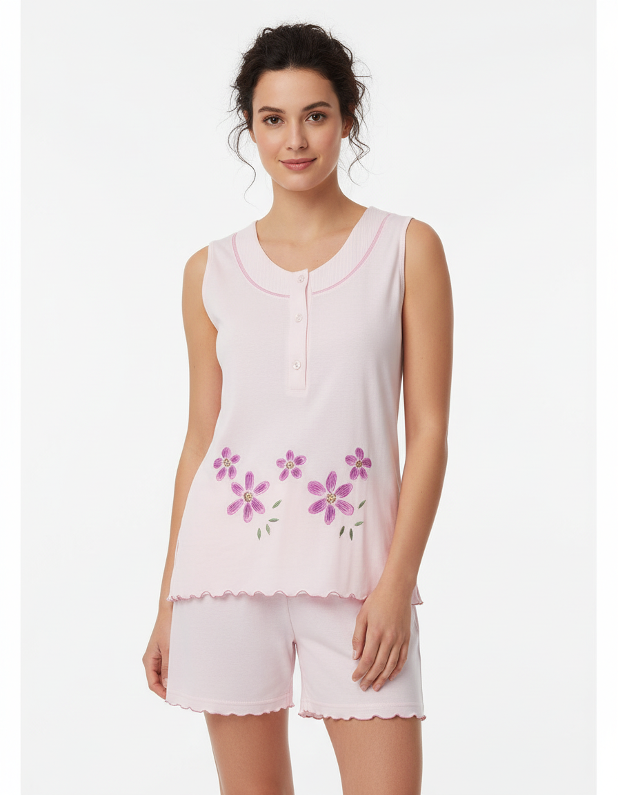 Γυναικείο Homewear με φαρδύ ώμο και σορτς BILLY’S Homewear 1116,ροζ.