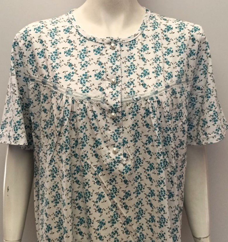 Κλασικό βαμβακερό Νυχτικό με κοντό μανίκι GIOTA Homewear 801-B,τυρκουάζ.