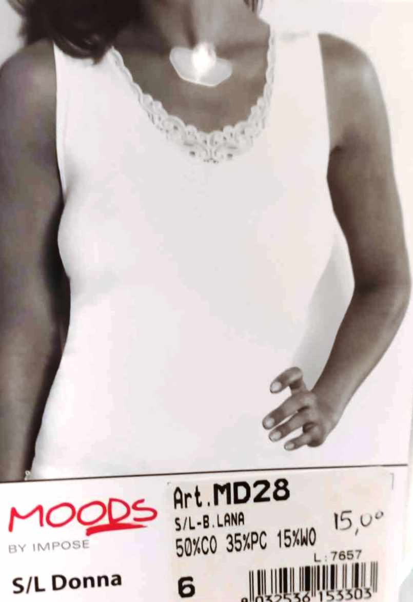 Μάλλινη Γυναικεία Φανέλα με δαντέλα μοτίφ MOODS MD28,λευκό.