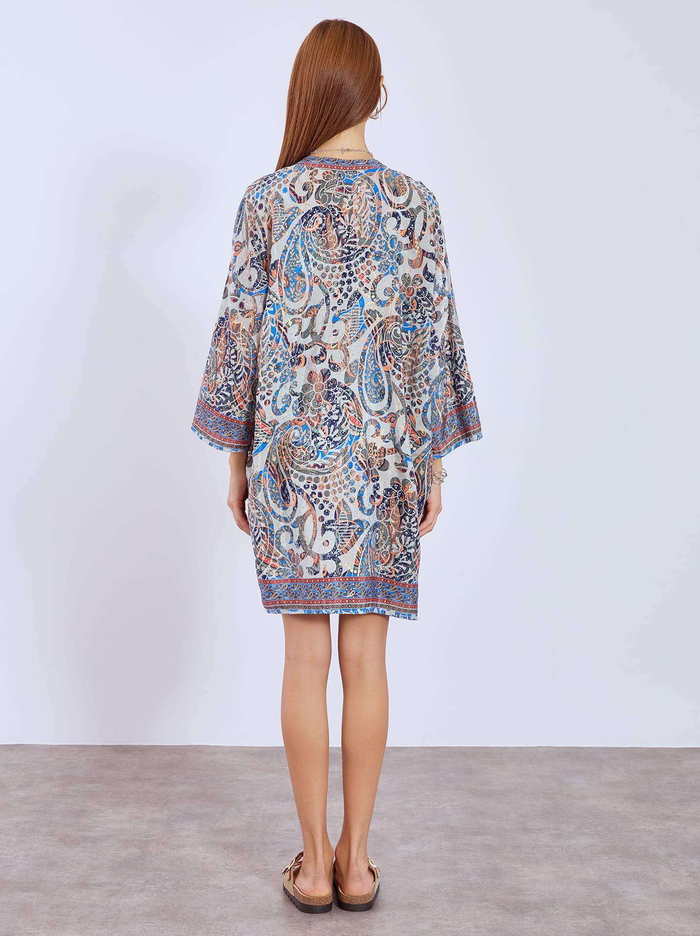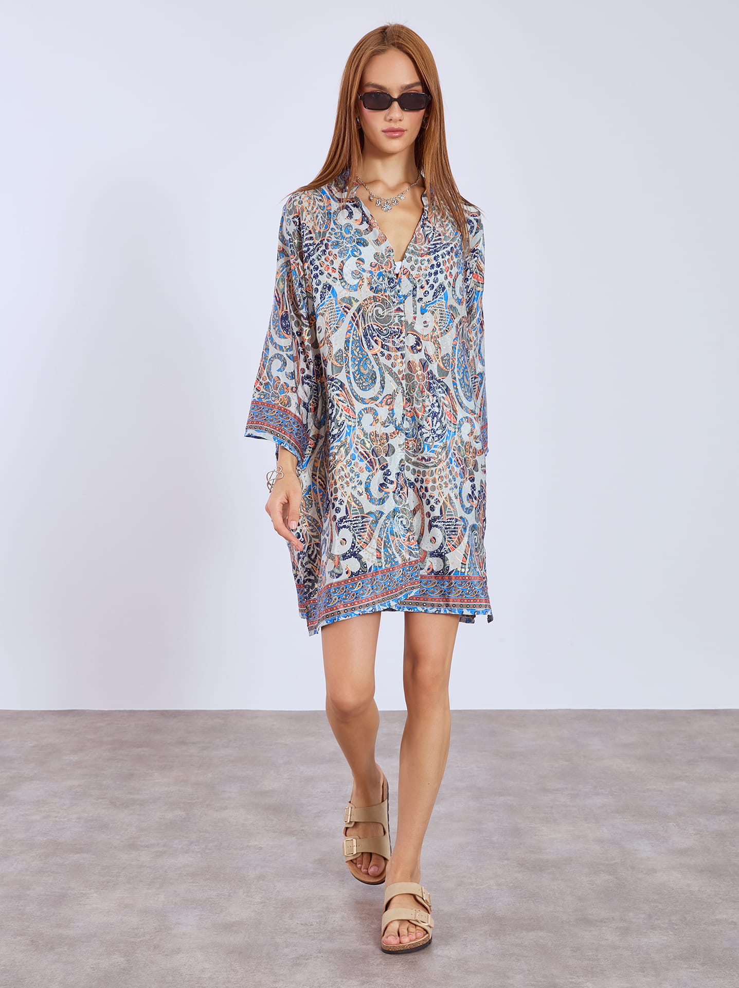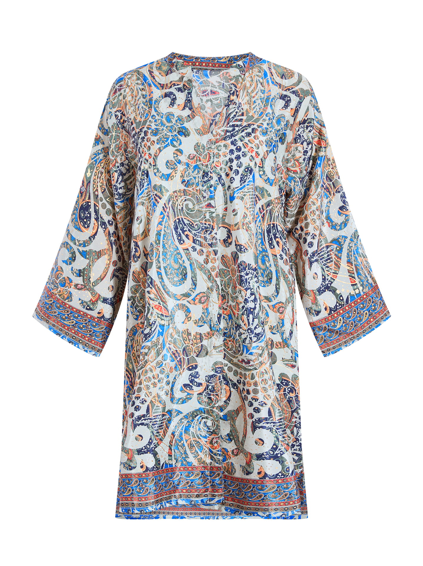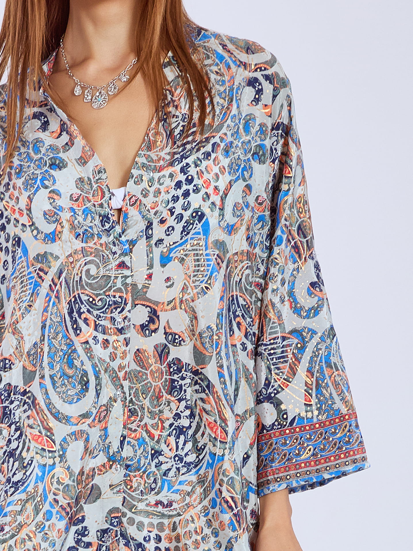 Μεταξωτό Καφτάνι-Πουκαμίσα με μανίκι 3/4,εμπριμέ,CL-54778,One Size.