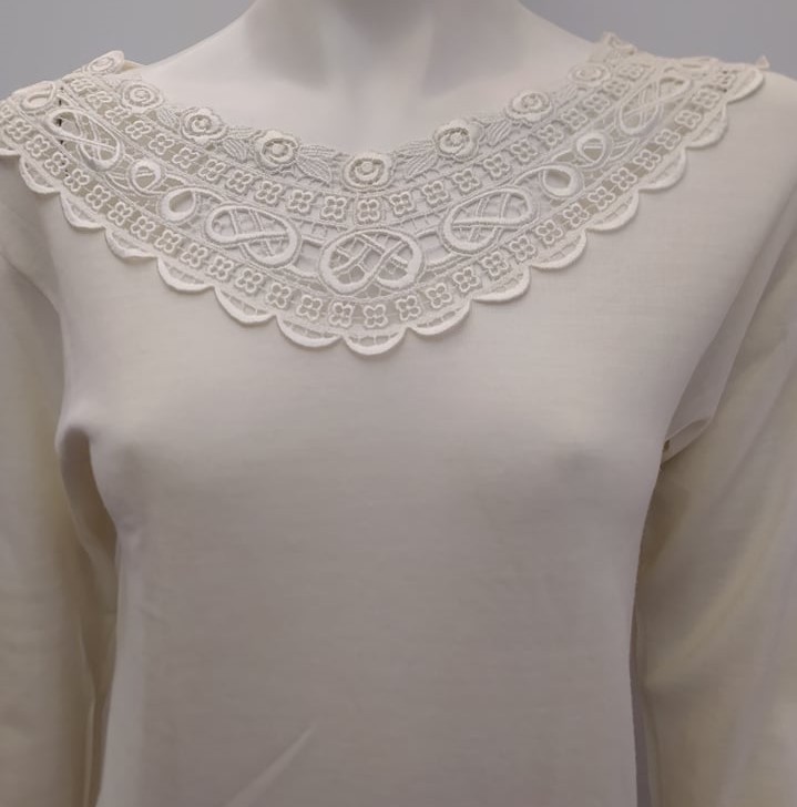 Μπλούζα-Outwear με μακρύ μανίκι και δαντέλα FILAM Lingerie SG,εκρού.