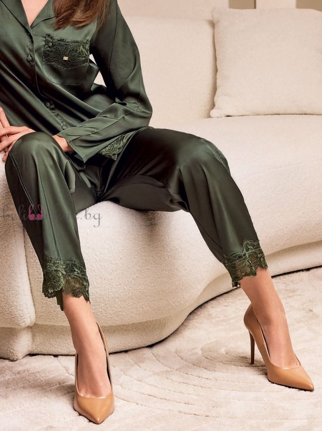 Σατέν Γυναικεία Πυζάμα με λεπτομέρειες δαντέλας LORMAR Intimo 651816-Felce(2494).