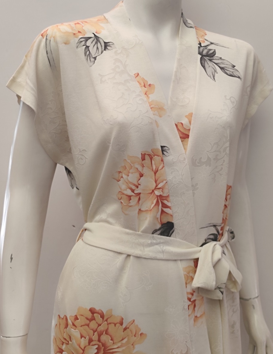 Σετ Ρόμπα-Νυχτικό SCHERZO Homewear 1556,εκρού-φλοράλ. Σύνθεση : 65% viscose – 35% polyester.