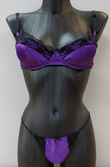 Σετ σλιπ-σουτιέν Fontana Di Vita 1246,σκούρο μωβ-μαύρο. Με μπανέλα και ενίσχυση. Προέλευση : ΕΛΛΑΔΑ.