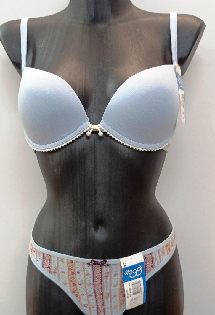 Σετ σλιπ-Σουτιέν SLOGGI Dreamy WHU,γαλάζιο. Σουτιέν με μπανέλα και ενίσχυση. Ασορτί String slip SLOGGI Jolie.