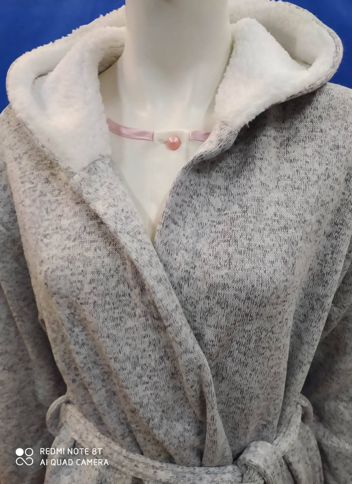 Σταυρωτή Ρόμπα με κουκούλα DODO Homewear DOF.RCF.A,γκρι. Σύνθεση : 100% polyester.