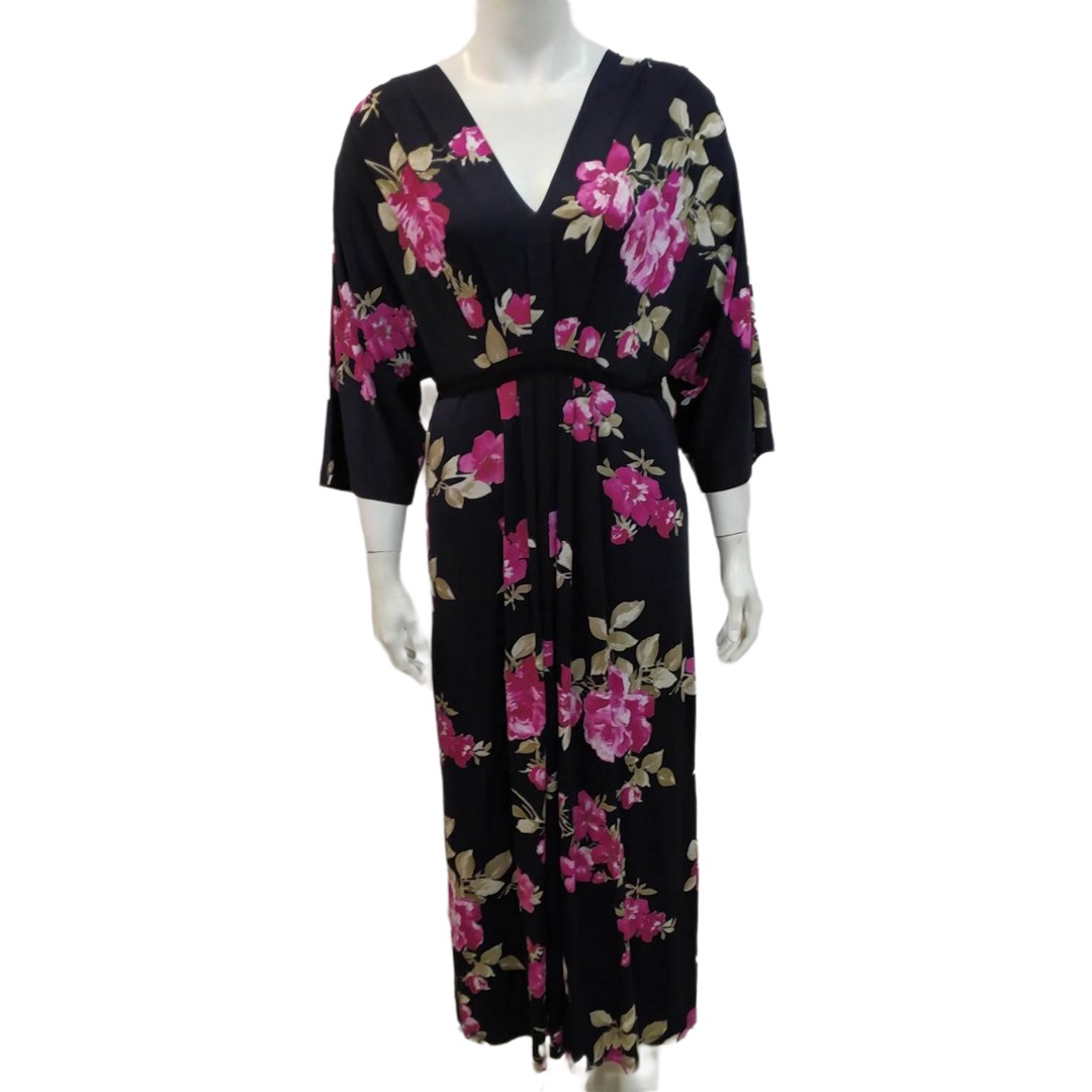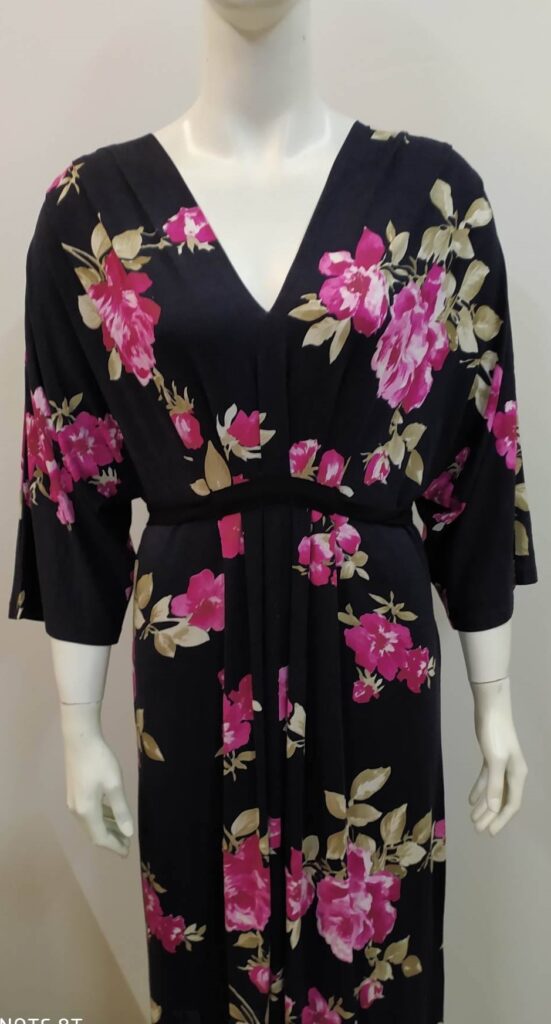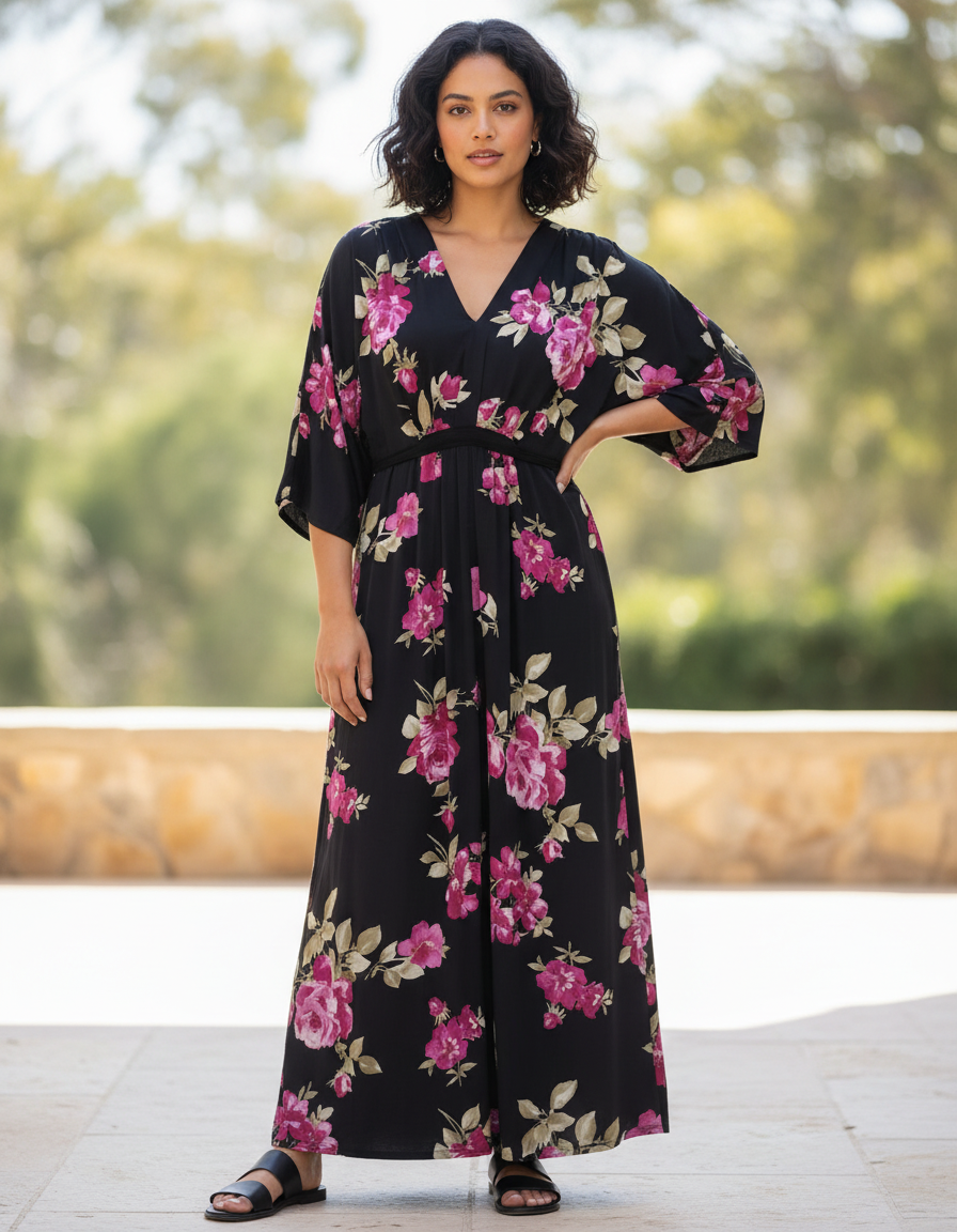 Maxi Φόρεμα-Καφτάνι Claire Katrania C-5900, μαύρο-φλοράλ. Σύνθεση : 96% viscose – 4% elastan.