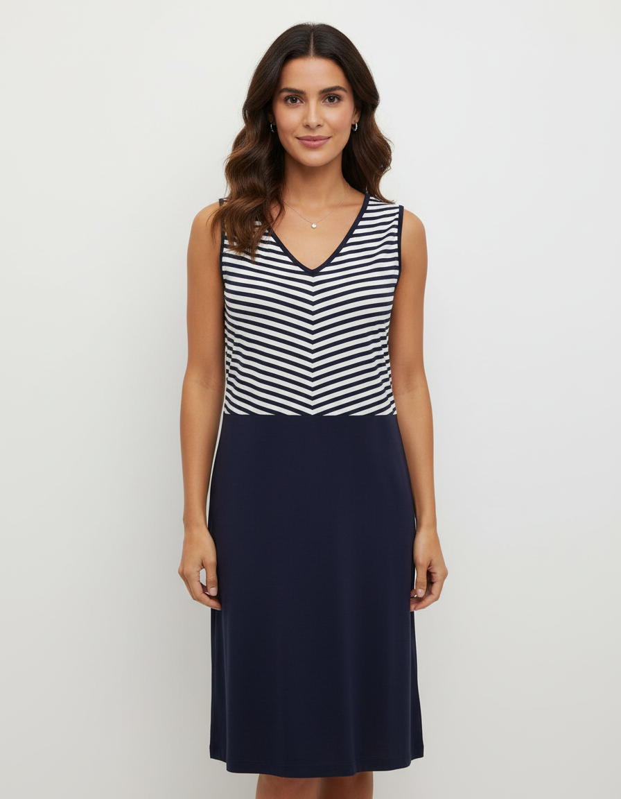 Φόρεμα με φαρδιά ράντα RO-NI Homewear 1402N,μπλε ριγέ.