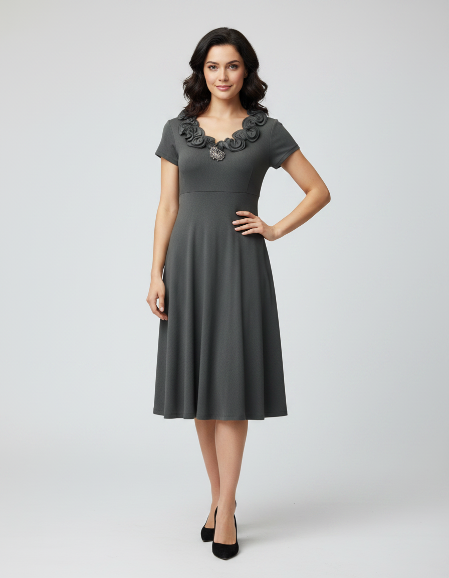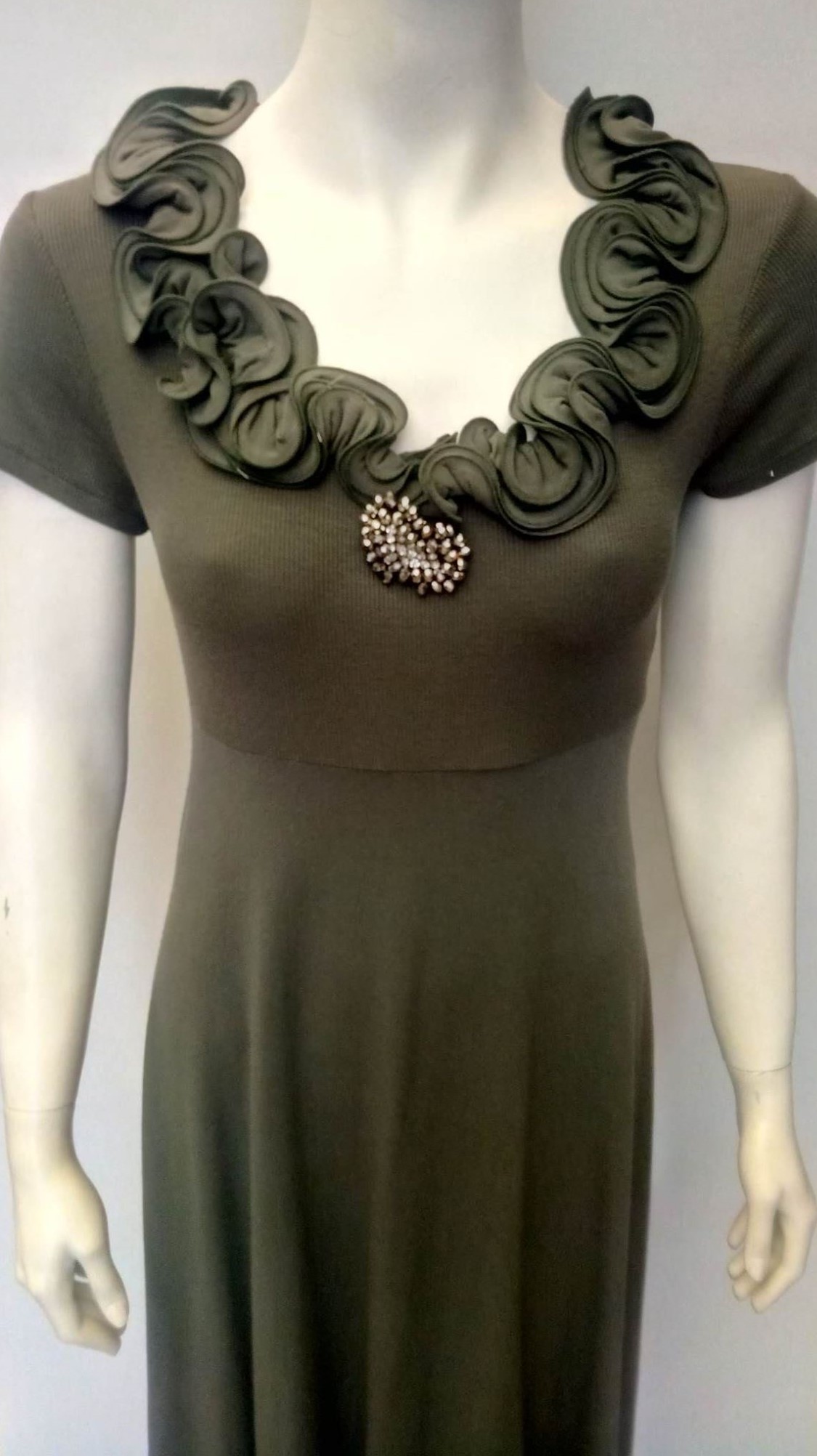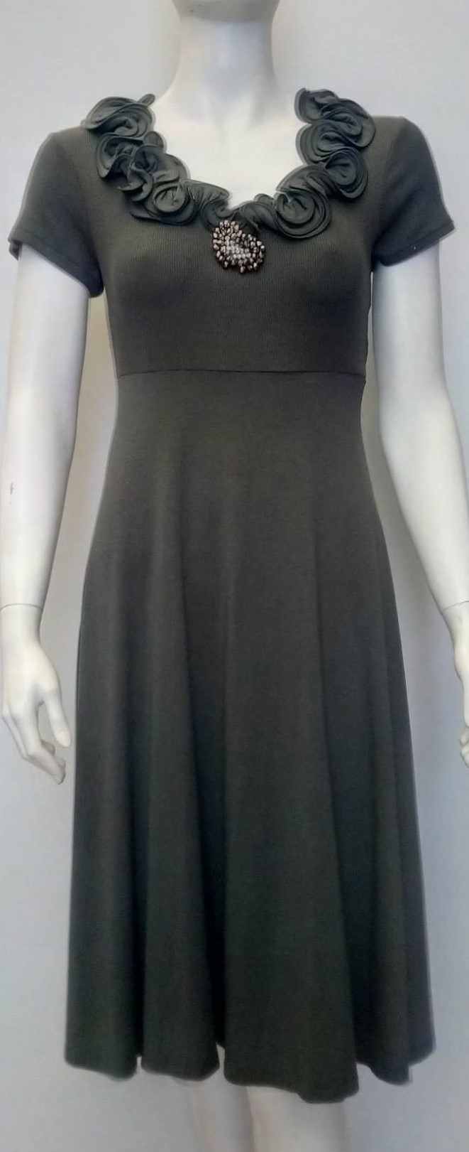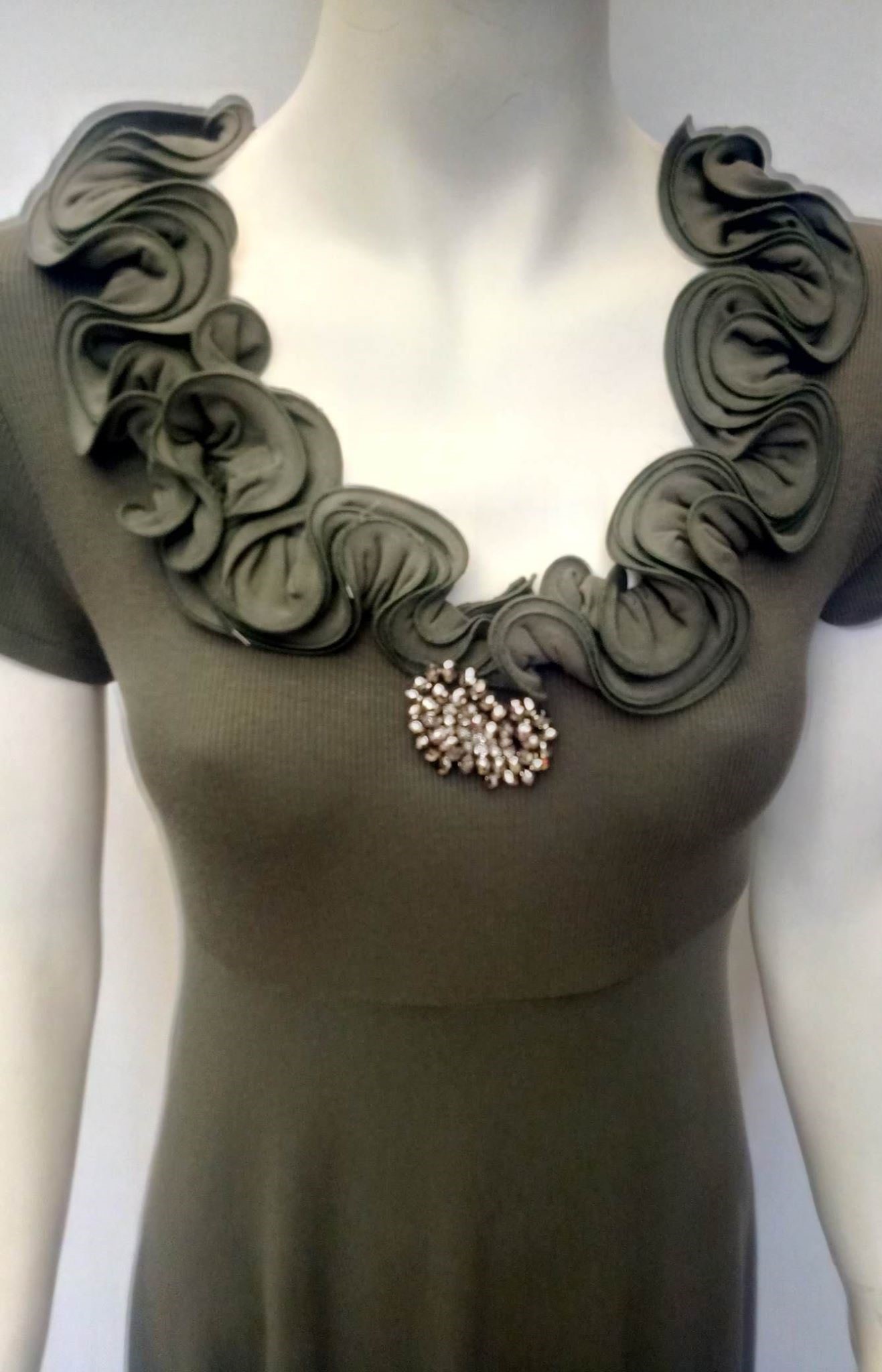 Με κοντό μανίκι,υπέροχη λαιμόκοψη και διακριτικό κόσμημα στο ύψος του στήθους.