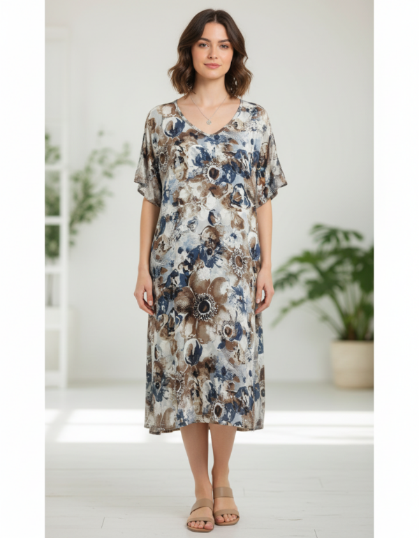 Φόρεμα με κοντό μανίκι SCHERZO 4074, εμπριμέ. Σύνθεση : 95% viscose – 5% lycra.