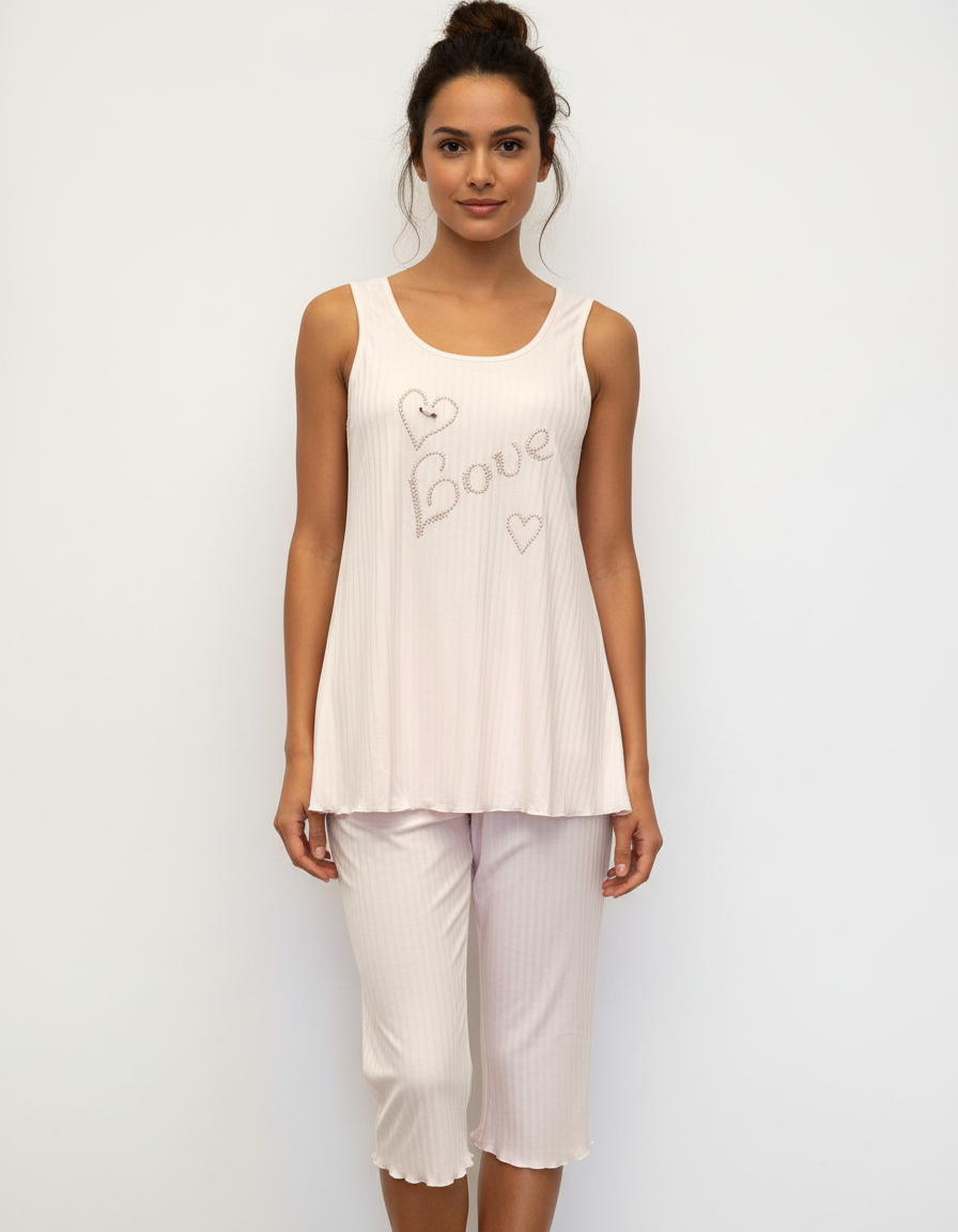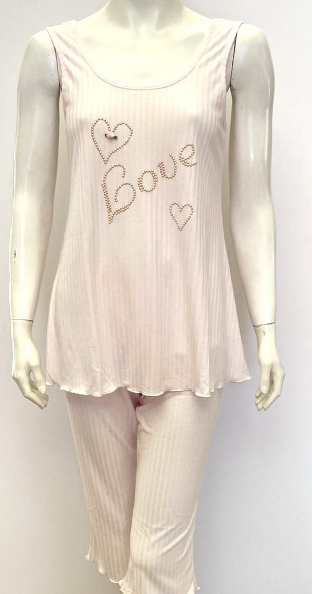 Homewear με φαρδιά ράντα και Κάπρι παντελόνι CLAIRE Katrania 7170,ροζ.