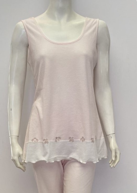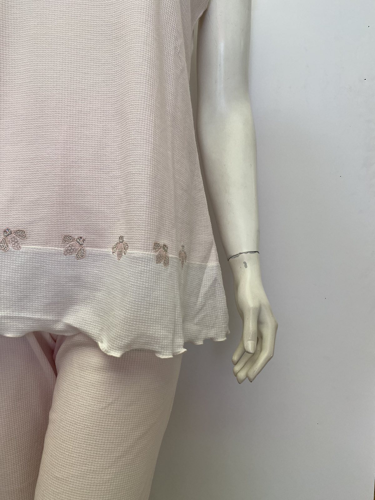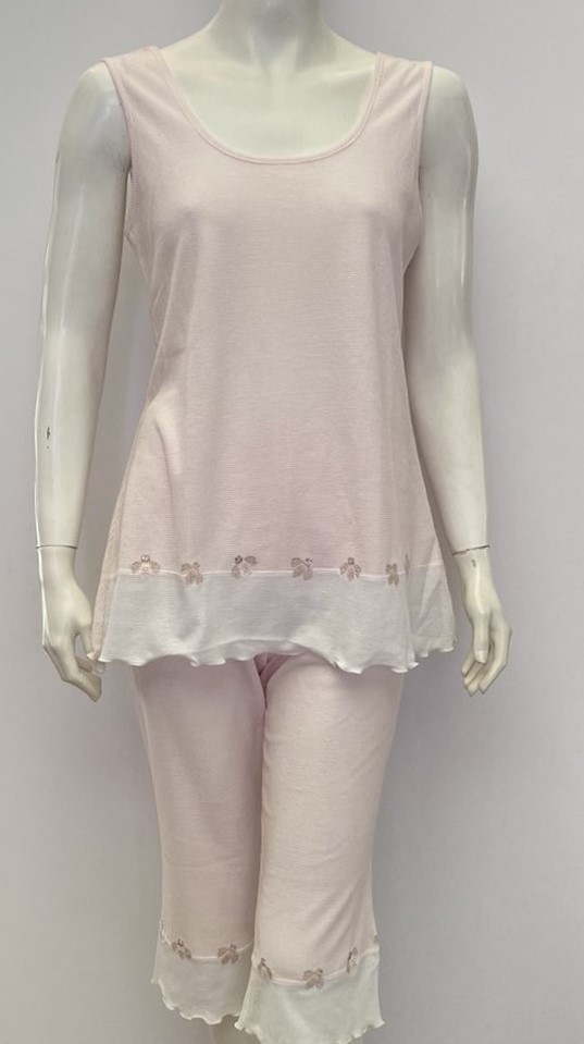 Homewear με φαρδιά ράντα και Κάπρι παντελόνι CLAIRE Katrania 6796,ροζ.