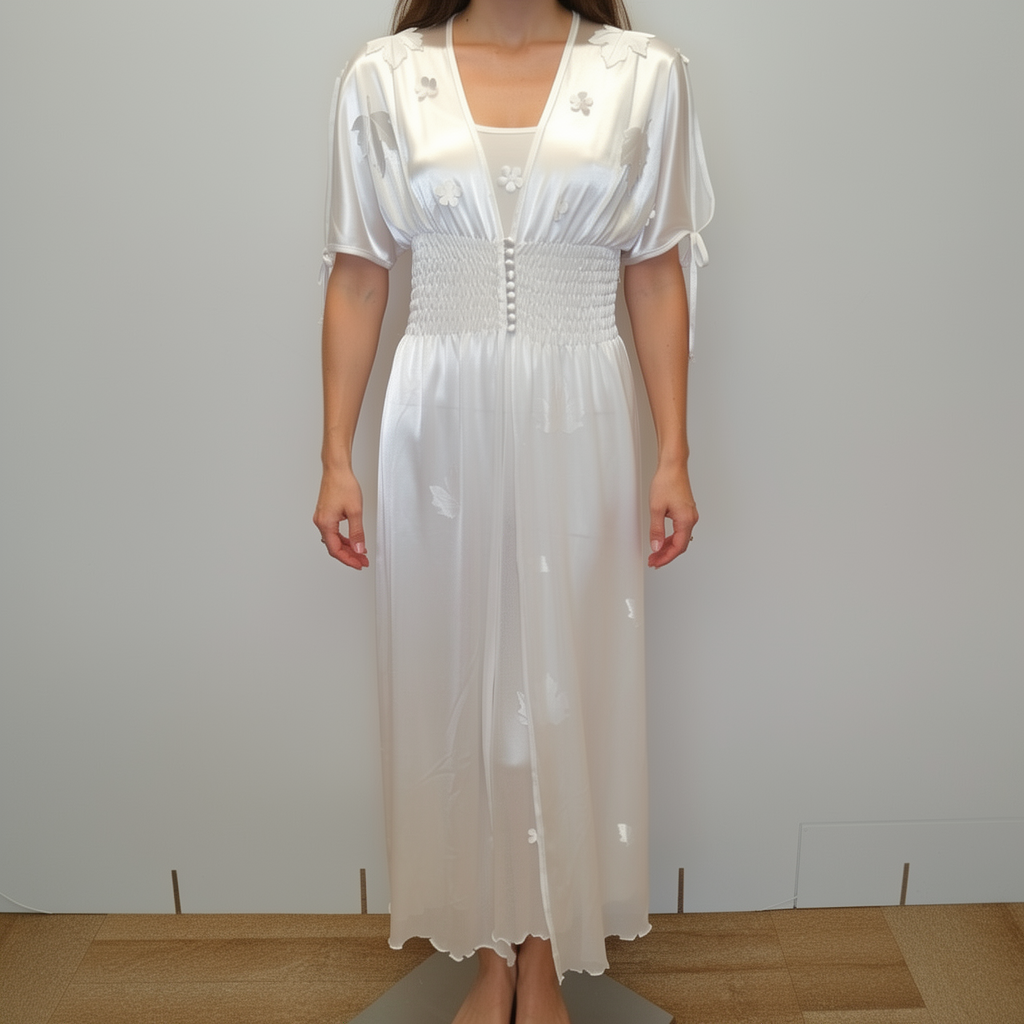 Maxi Ρόμπα με κοντό μανίκι και ασορτί Maxi Νεγκλιζέ-Νυχτικό με λεπτή ράντα.