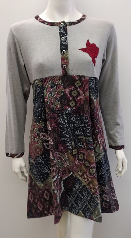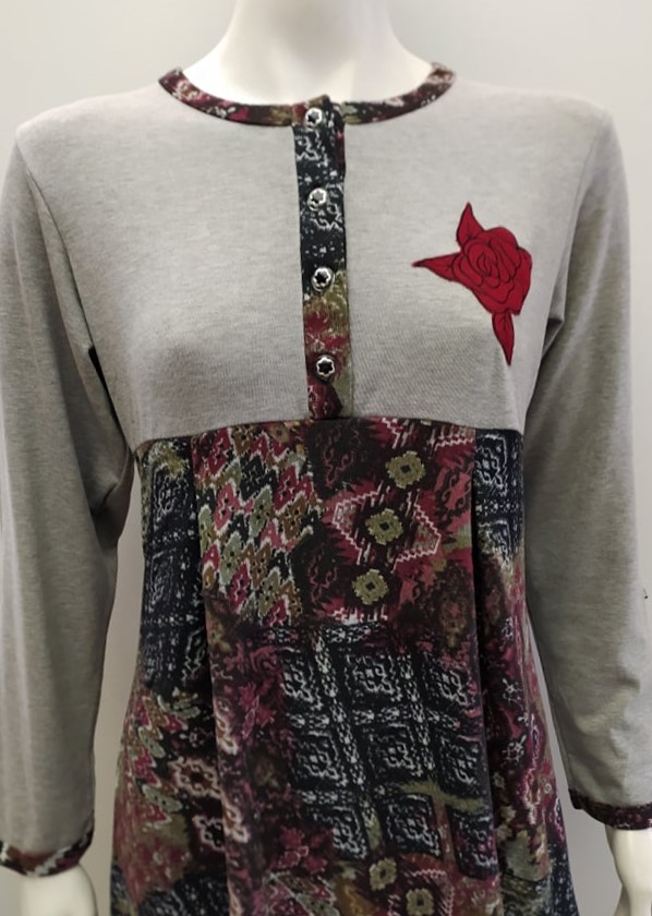 Midi μακρυμάνικο Νυχτικό dama koupa 1001,γκρι-εμπριμέ. Σύνθεση : 70% βαμβάκι – 30% elastane. Προέλευση : ΕΛΛΑΔΑ.
