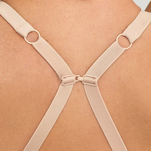 Ρυθμιζόμενες τιράντες και πρακτικό αξεσουάρ στη πλάτη για μετατροπή σε neckholder, για χιαστί.