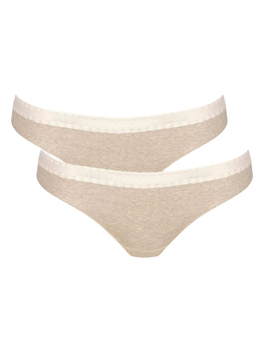 SLOGGI Go Ribbed H Βαμβακερά Γυναικεία Brazil 2Pack με Δαντέλα Μπεζ,10217717-M013.