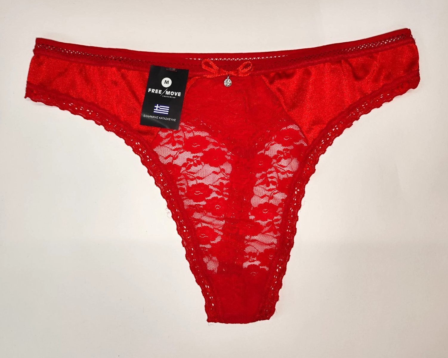 String Slip με δαντέλα FREE MOVE 23307,κόκκινο.
